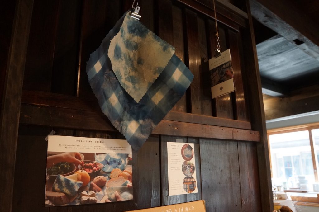 南木曽町の藍染め作家さんがつくる「ミツロウラップ」や