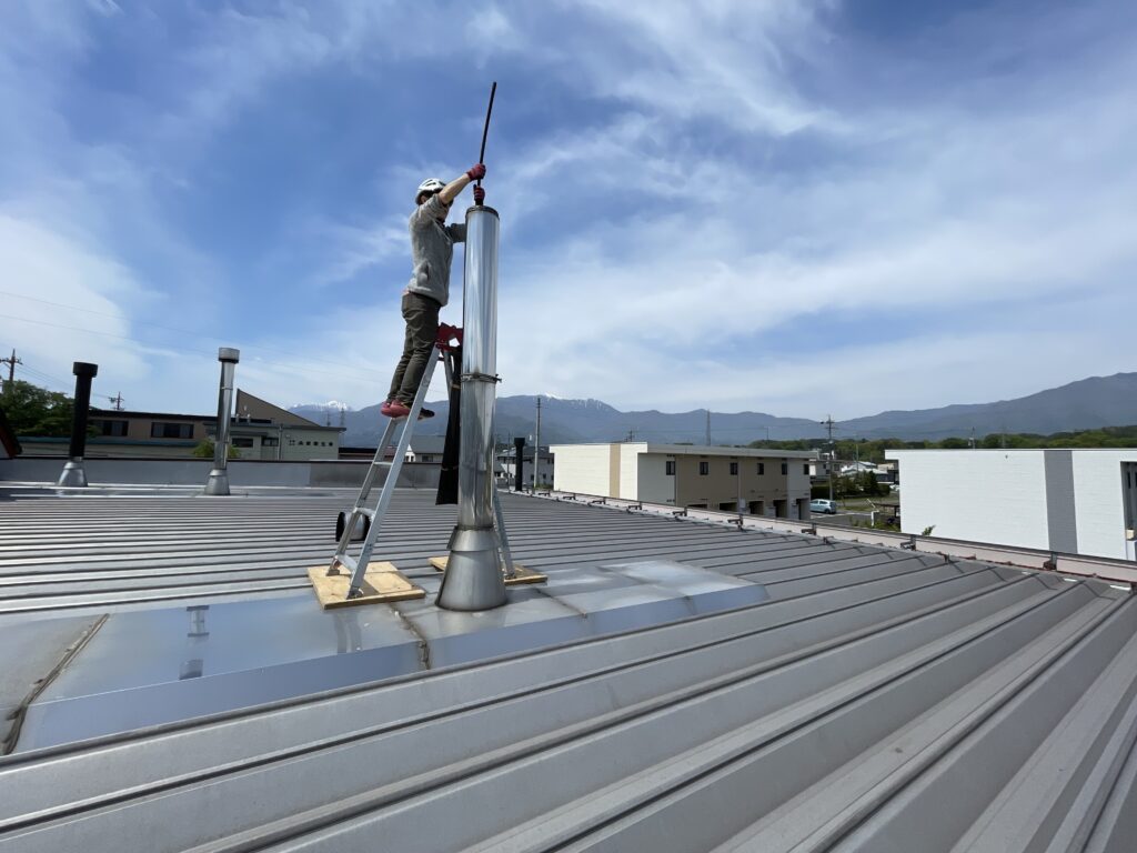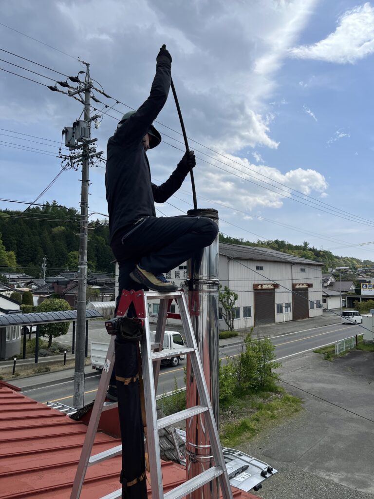 運良く天気の良い日となり、本社とショールームの煙突掃除をしました🏭🧹