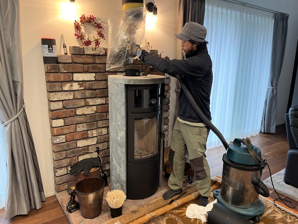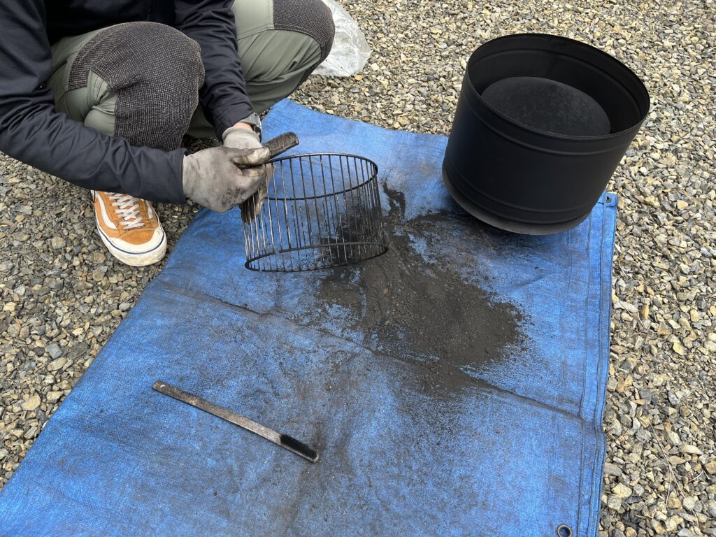 昨シーズン通して焚いた後の煙突掃除。